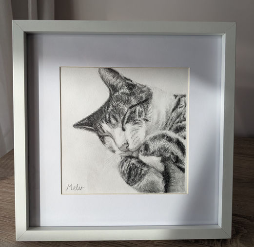 My portraits can be completed as small as A6 and up to as large as A4 and can be ordered framed or unframed.